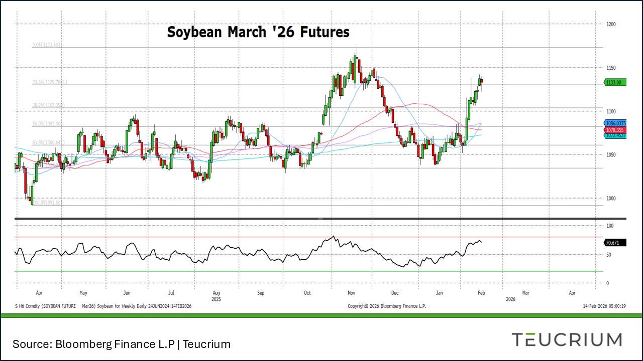Supportive headlines included concerns over potential winterkill in Russia due to ice formation, though the extent of damage remains uncertain. Strong weekly U.S. export sales, including business with Indonesia, added to constructive sentiment. Despite the recent strength, the broader global supply backdrop remains ample, suggesting rallies may require either confirmed weather threats or sustained demand improvement to extend further.